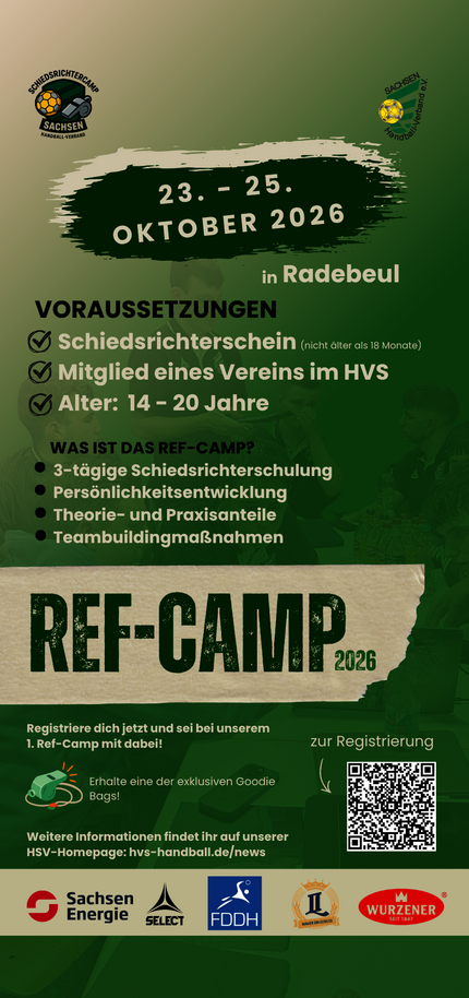 Bist du bereit, deine Skills als Schiedsrichter auf das nächste Level zu bringen? Dann ist das Ref-Camp des Handball-Verbands Sachsen genau das Richtige für dich!