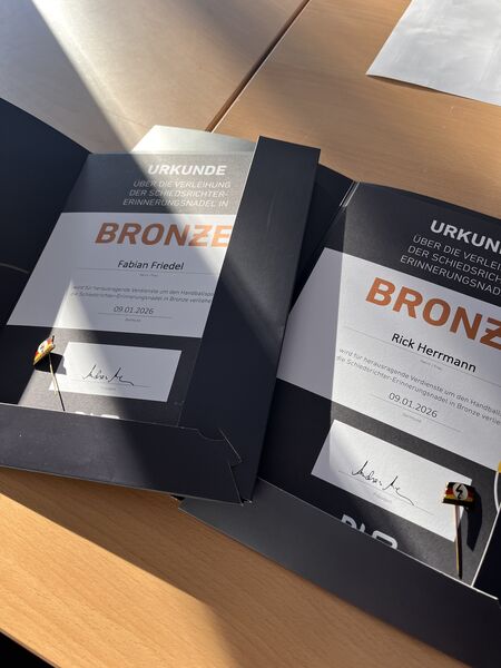 Besonderer Höhepunkt waren die Ehrungen für die Schiedsrichter, bei der u.a. Friedel-Hermann die Bronzene DHB-Ehrenmedaille erhielten. Glückwunsch!
